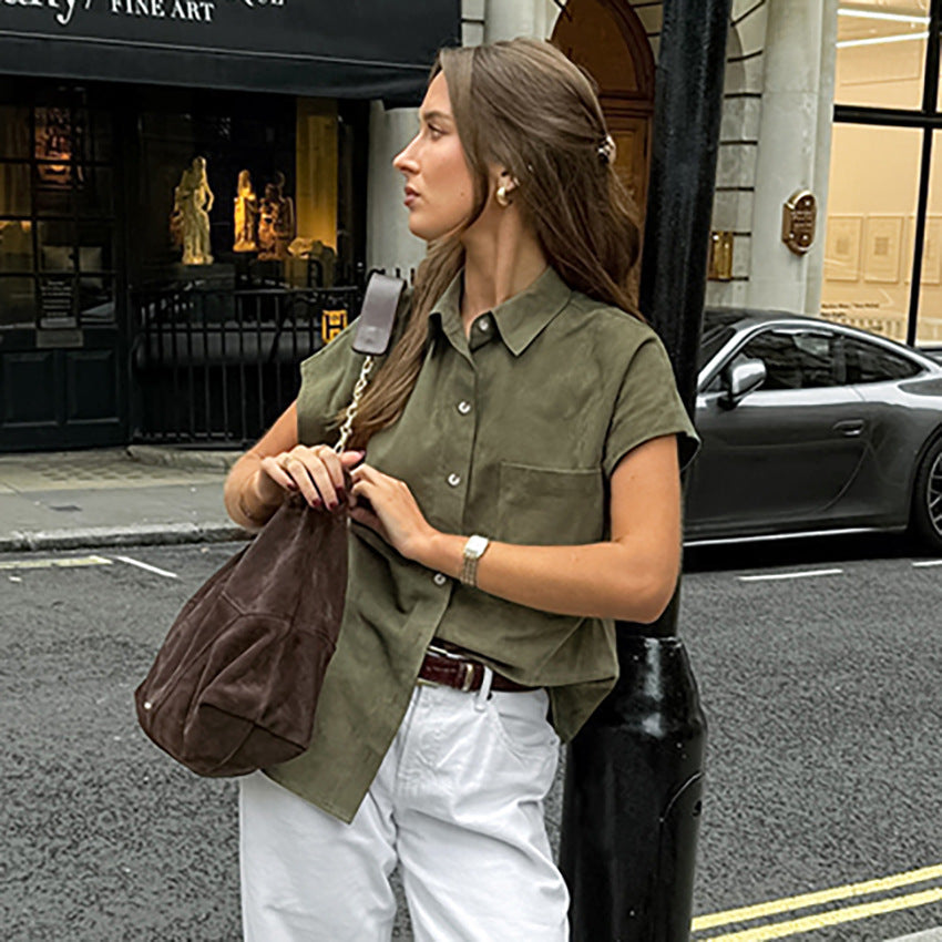 Women's Blouse – Cotton Linen – Relaxed Fit – Button Closure – Chest Pocket – Sleeveless