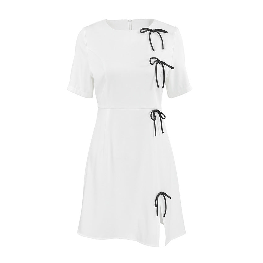 Ladies Dress – A-line Fit – Short Sleeve – Bow Detail – Mini Length Elegant