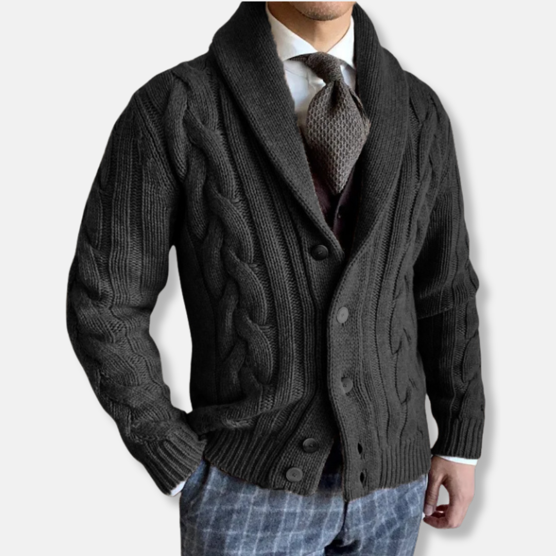 Men's Knitted Cardigan – Wool Mix – Regular Fit – Cable Pattern – Shawl Collar – Button Closure