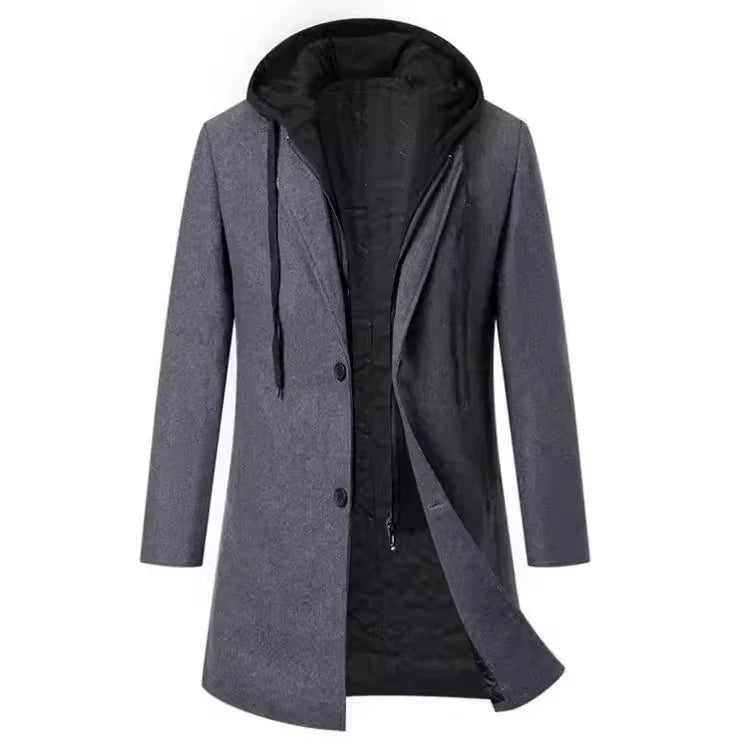 Men's Overcoat – Tailored Fit – Wool-Look – Padded Lining – Hood Insert – Mid-Length