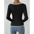 This women's top with long sleeves and a V-neck offers an elegant and comfortable look, ideal for both casual and dressed-up occasions. The V-neck adds a refined touch, while the long sleeves provide extra coverage, perfect for cooler days.