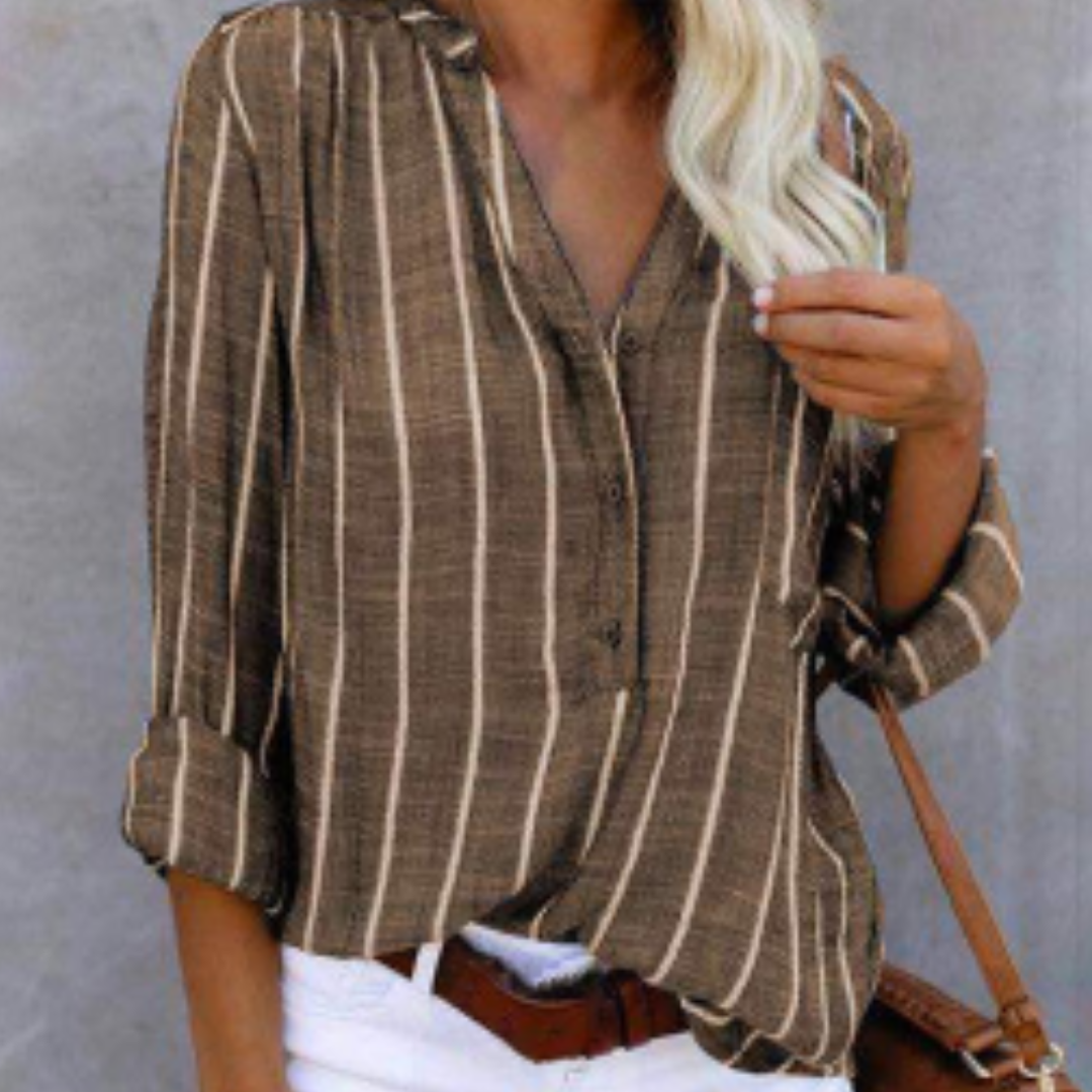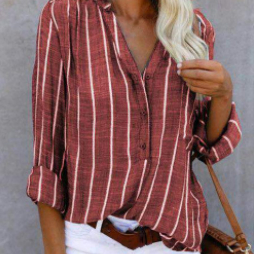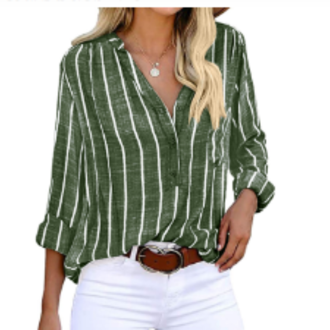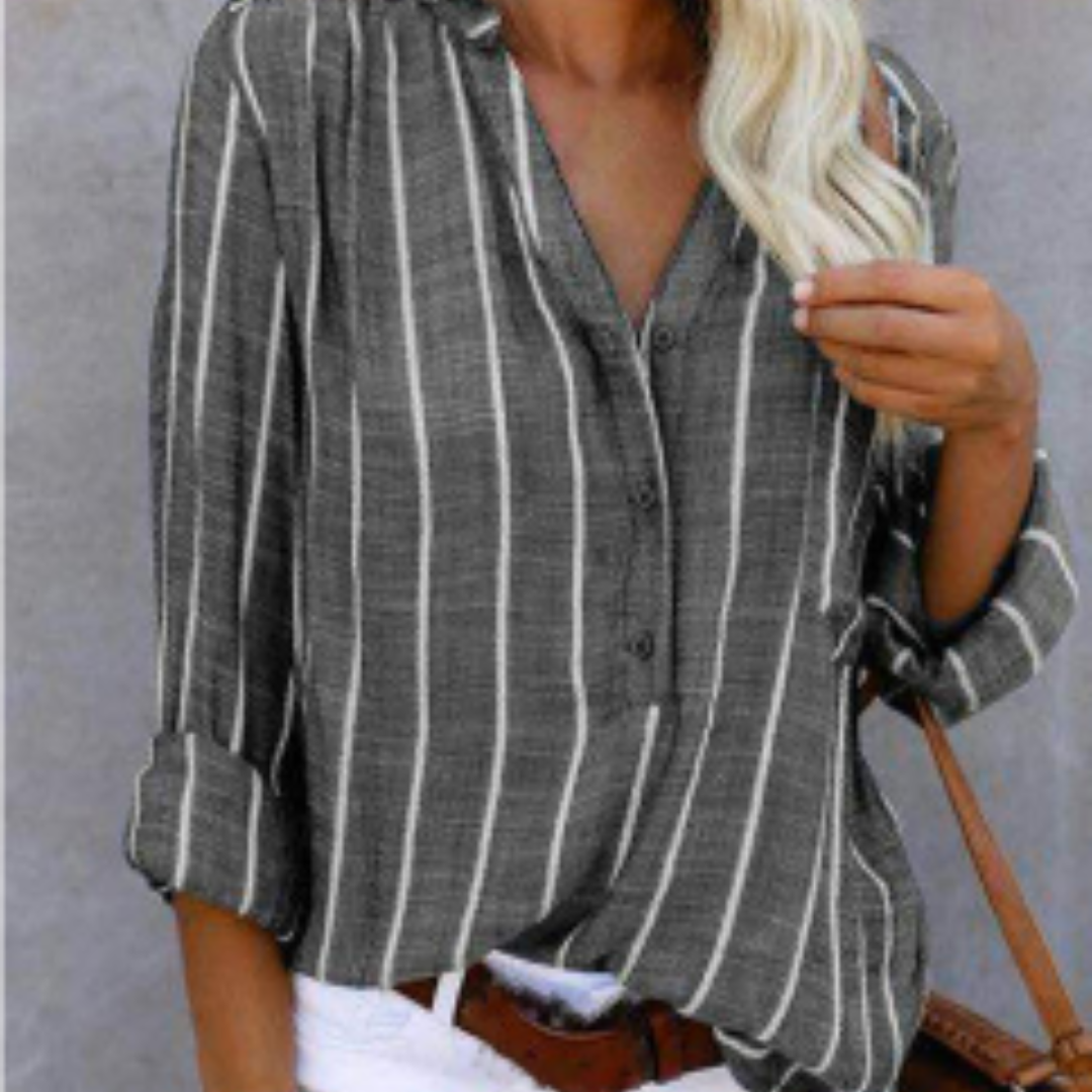 This Fashionable Striped Women's Shirt has a contemporary and refined appearance, perfect for a modern wardrobe. The striped pattern offers a fresh, dynamic look that can be worn both casually and dressed up, depending on the occasion.