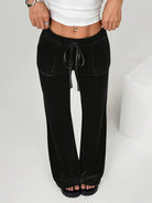 Women's Flared Pants – Velvet – Wide Legs – Elastic Waist – With Pockets
