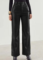 Women's Leather Pants - High Waist Model - Wide Legs - Full Length - With Pockets