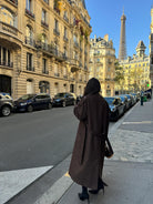 This stylish bitter brown trench coat with an elegant waist belt is a timeless addition to your wardrobe. The refined design and classic cut make this trench coat perfect for both casual and formal occasions.