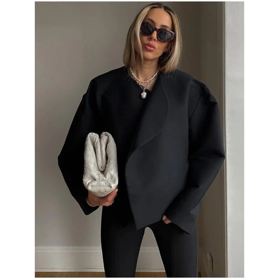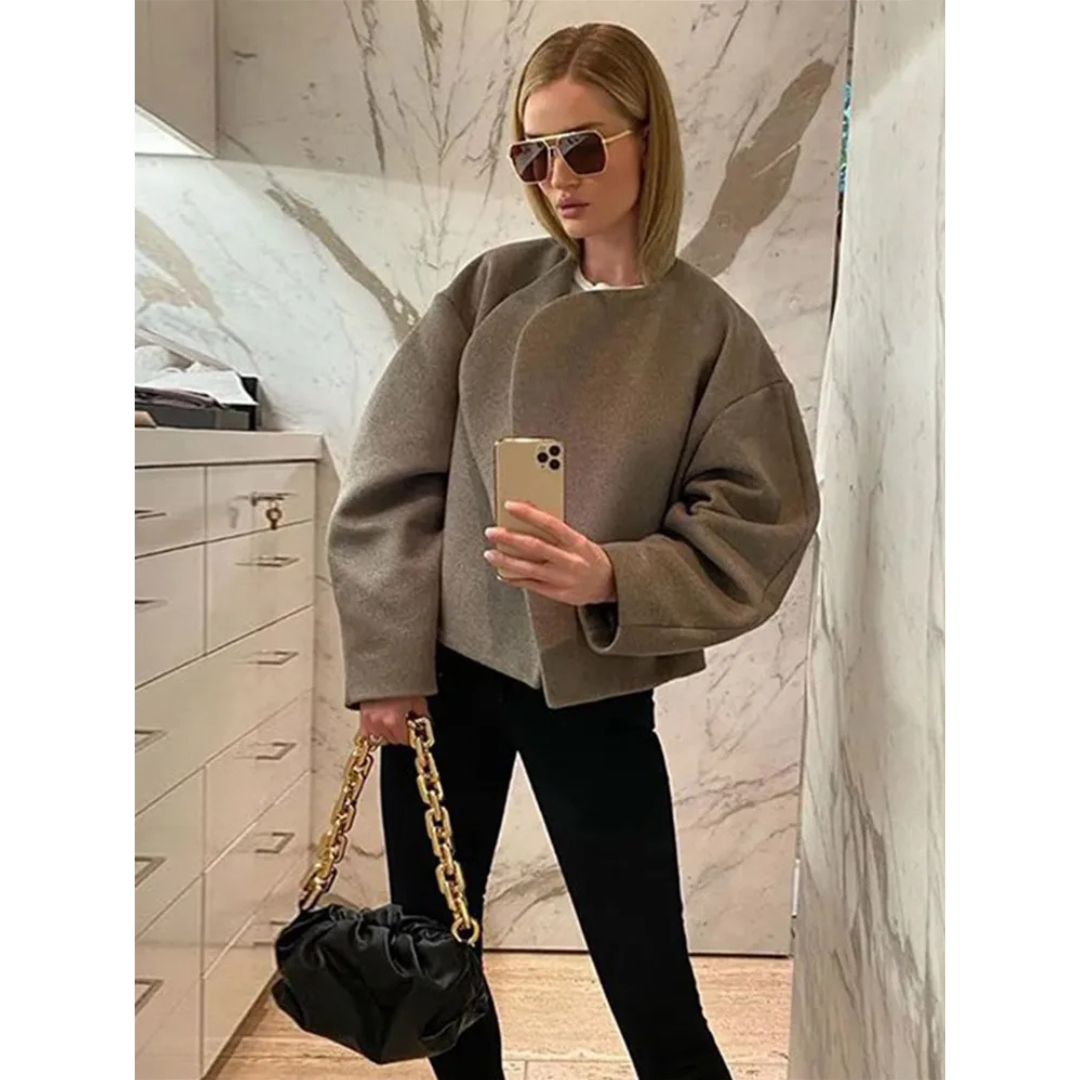 This elegant short warm coat offers a refined and trendy appearance, perfect for the colder months. The oversized design provides extra comfort and a modern look, while the chic finish gives your outfit a stylish and feminine touch.