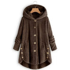 Women's Fleece Jacket – Relaxed Fit – With Hood – Button Closure – Extra Long At The Back