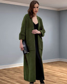 Women's Knitted Jacket – Oversized Fit – Wool Look – V-neck – Long Length – Pockets