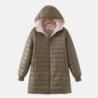 Women's Quilted Jacket – Mid-Length – Hood – Fleece Lining – Zipper – Ribbed Edges