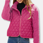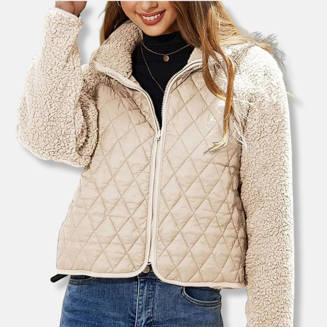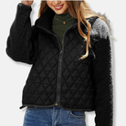 Women's Padded Jacket – Sherpa Sleeves – Cropped Relaxed Fit – Stand Up Collar