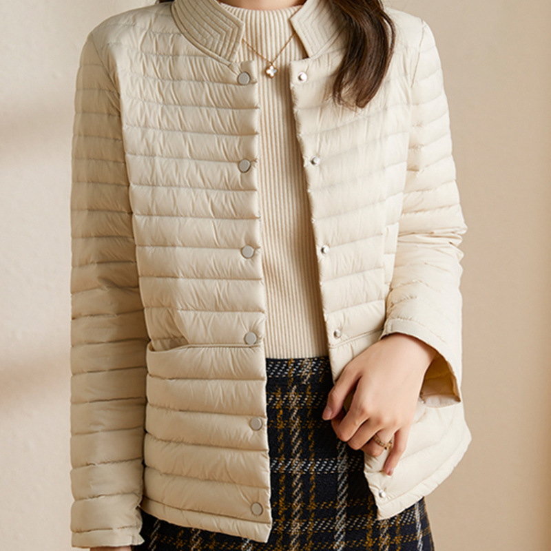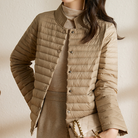 Discover the Women's Jacket – Lightweight Padded – Slim Fit – Water-Repellent Collar – Short Style. This slim-fit padded women's jacket provides optimal warmth without bulk, ideal for any season. A trendy, short lightweight jacket with a stylish water-repellent stand-up collar, perfect for a fashionable look. Your essential item for comfort and style!