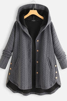 Women's Coat with Hood – Quilted Wool – A-Line Fit – Mid-Length with Buttons
