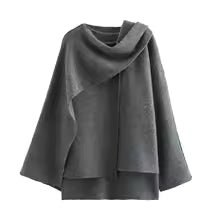 • Design: Oversized fit with asymmetrical shawl collar and layered details