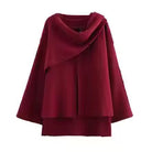 Discover the Women's Coat – Oversized Fit – Knitted Texture – Asymmetrical Shawl Collar – Mid-Length. This stylish, comfortable coat is perfect for the modern woman. With its unique oversized fit, soft knitted texture, and striking asymmetrical shawl collar, it effortlessly adds a chic touch to any outfit.