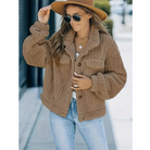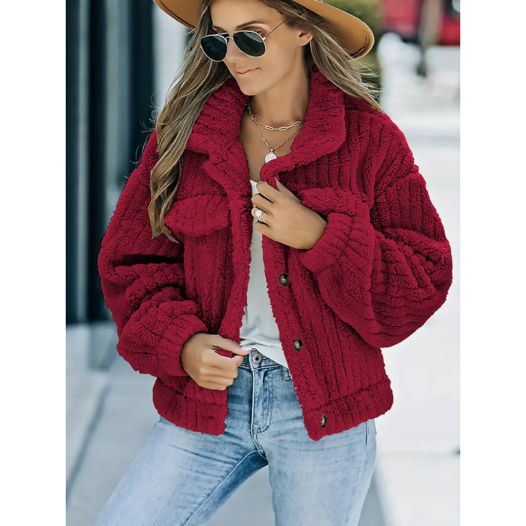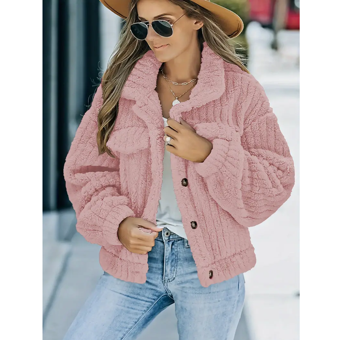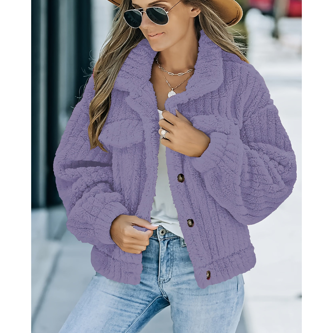 This women's short coat with button closure offers both warmth and style for the winter months. The button design provides a classic look, ideal for everyday wear.