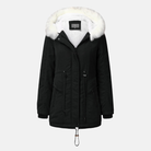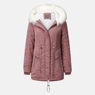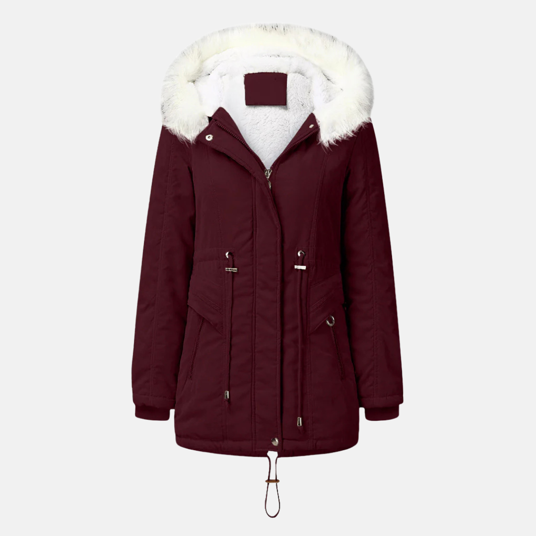 Women's Mid-Length Coat – Fleece Lining – Adjustable Waist – Faux Fur Hood – Lined