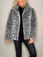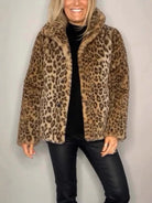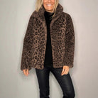 Women's Coat – Oversized Fit – Faux Fur – Lapel Collar – Leopard Print – Casual