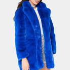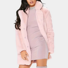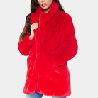This refined plush coat for women features an elegant design with a soft, comfortable fit. It is a versatile garment for the colder months.