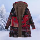 Women's Winter Coat – Warm Fleece Lining – Hood – Floral Print – Mid-Length Model