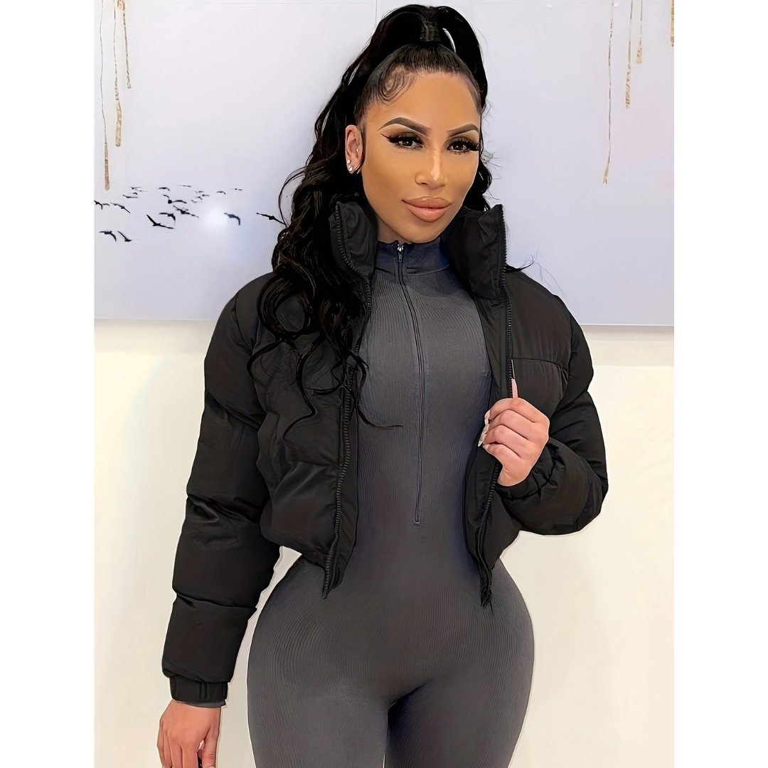 This short women's jacket with a zipper combines a modern design with a practical and stylish appearance. The minimalist finish and smart details make this jacket a versatile choice for any occasion.