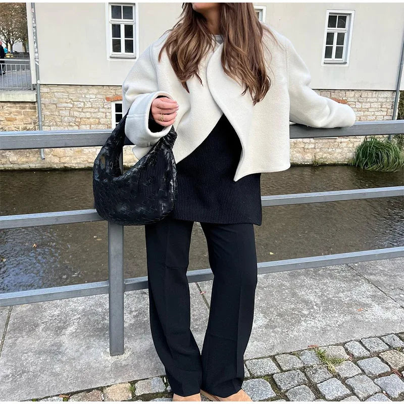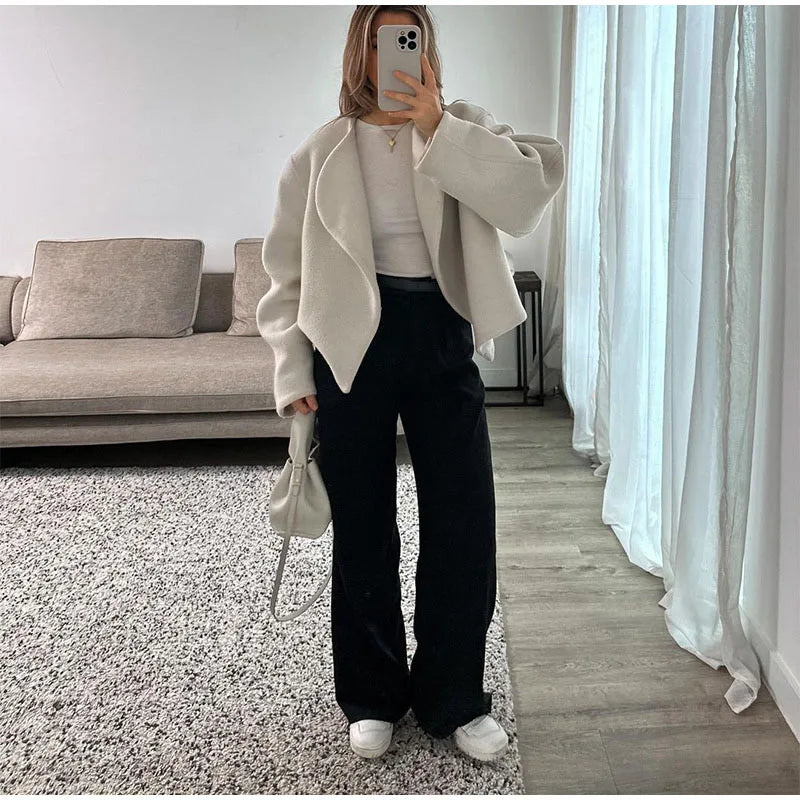 Women's Coat - Wool Blend - Loose Fit - Asymmetric Design - Fashionable Style: Embrace the cold in style! This fashionable coat combines a loose fit with an asymmetric design for a unique look. Perfect for any occasion, this coat offers comfort and a trendy appearance. Made from a soft wool blend.