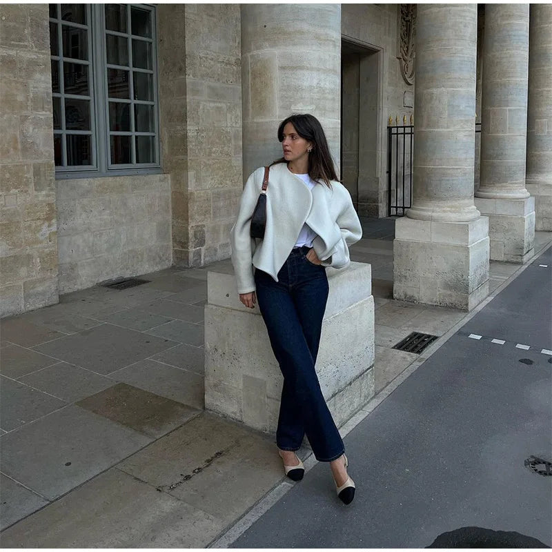 Ladies Coat - Wool Blend - Loose Fit - Asymmetrical Design - Fashionable Style