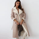 This elegant long coat with button closure for women combines refinement with practical functionality. The timeless design with a classic button closure provides a chic appearance, while the long cut offers extra warmth during the colder months. Perfect for a stylish look, whether you are going to work or taking an evening walk.