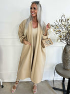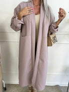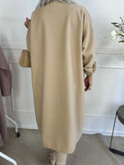 This long coat for women combines classic charm with modern elegance, with a flattering, floor-length design that adds a touch of grace to any look. The clean lines and structured cut make it a statement piece, perfect to wear in the colder months.