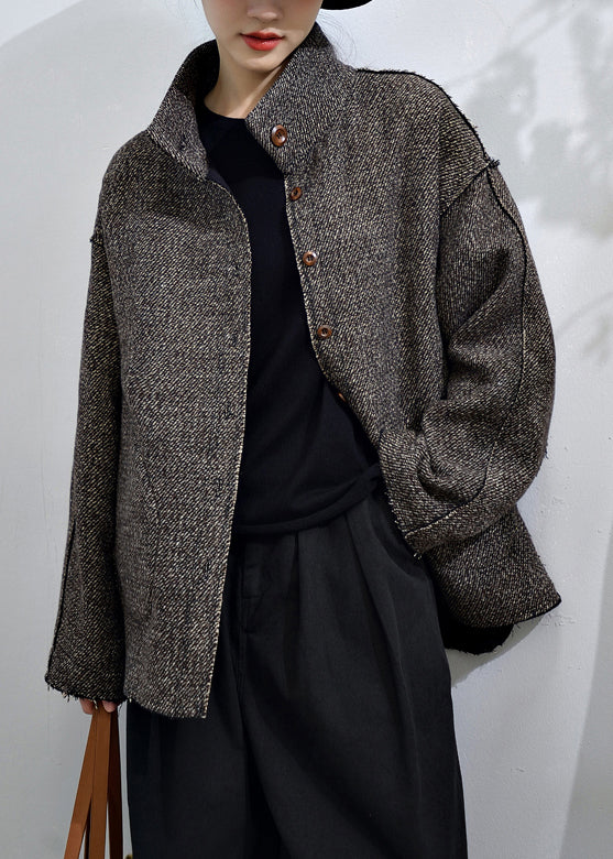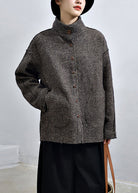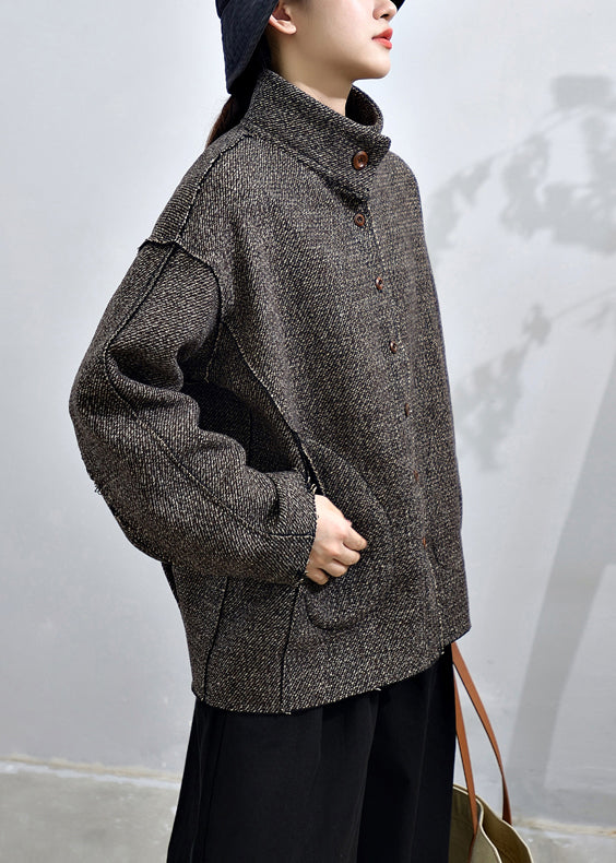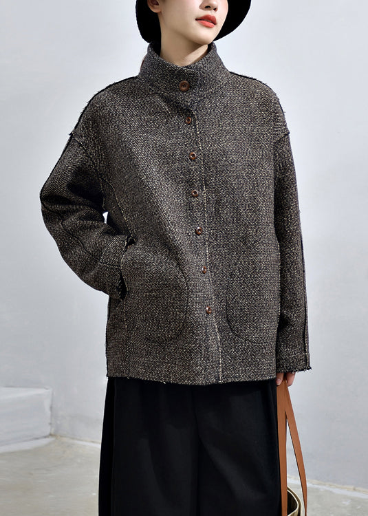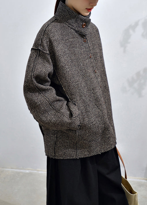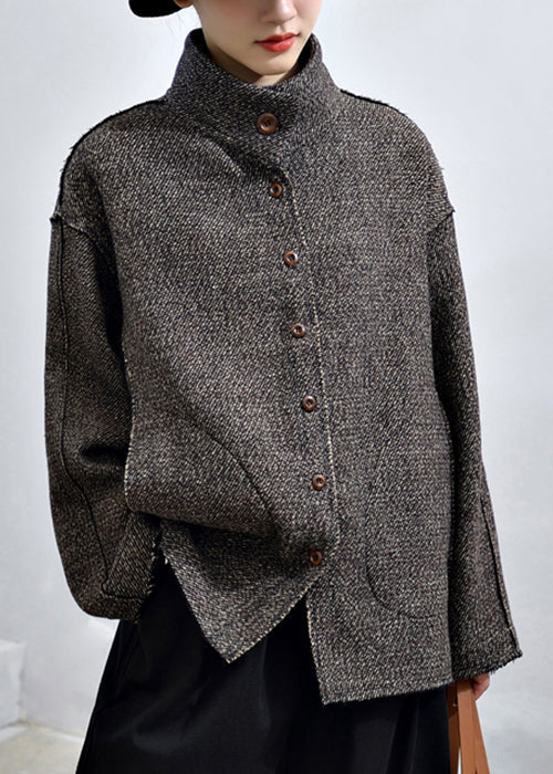 Loose Dark Gray Coat with Buttons and Pocket Details