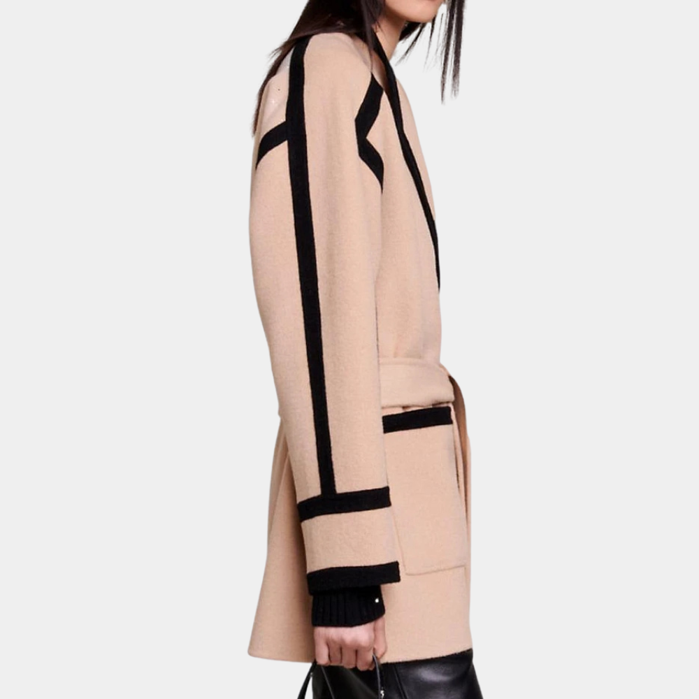 This modern coat for women features a contemporary design that combines style and functionality. It is a versatile garment that effortlessly adapts to different looks and is perfect for the colder months.