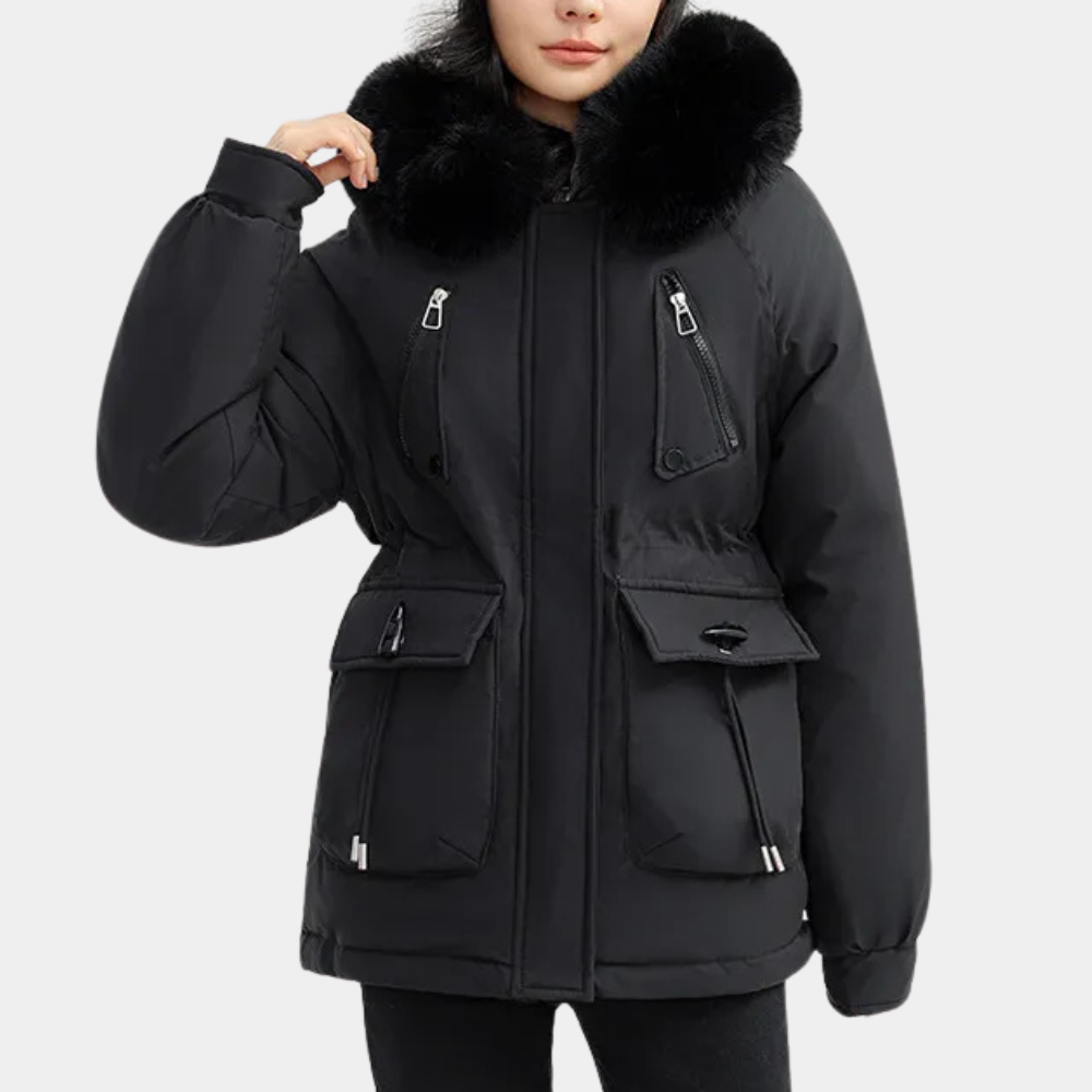 This stylish coat for women has an elegant design that is perfect for both casual and more dressed-up looks. It is a versatile garment that complements your wardrobe with a chic appearance.