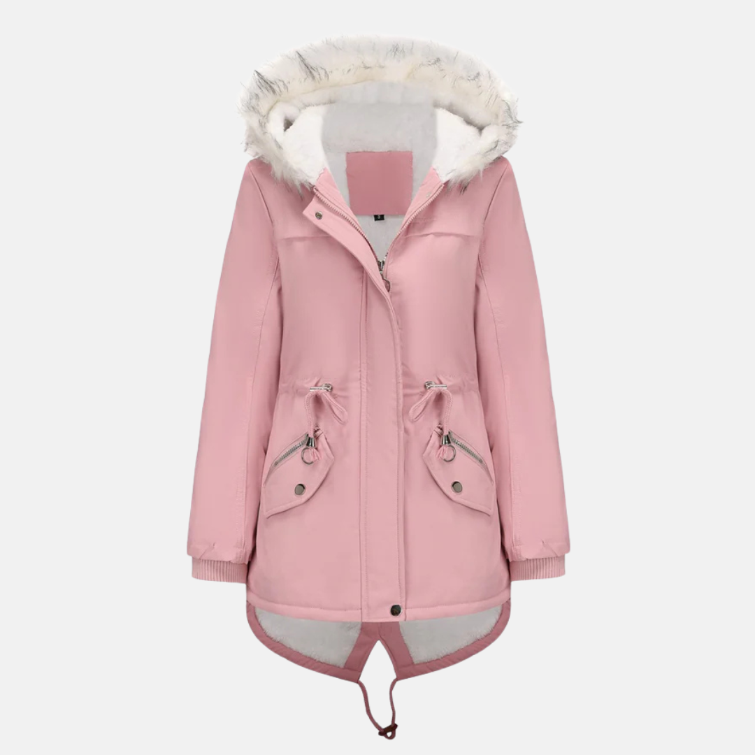 Women's Coat Mid-Length – Windproof Water-Repellent – Waist Drawcord – Faux Fur Hood