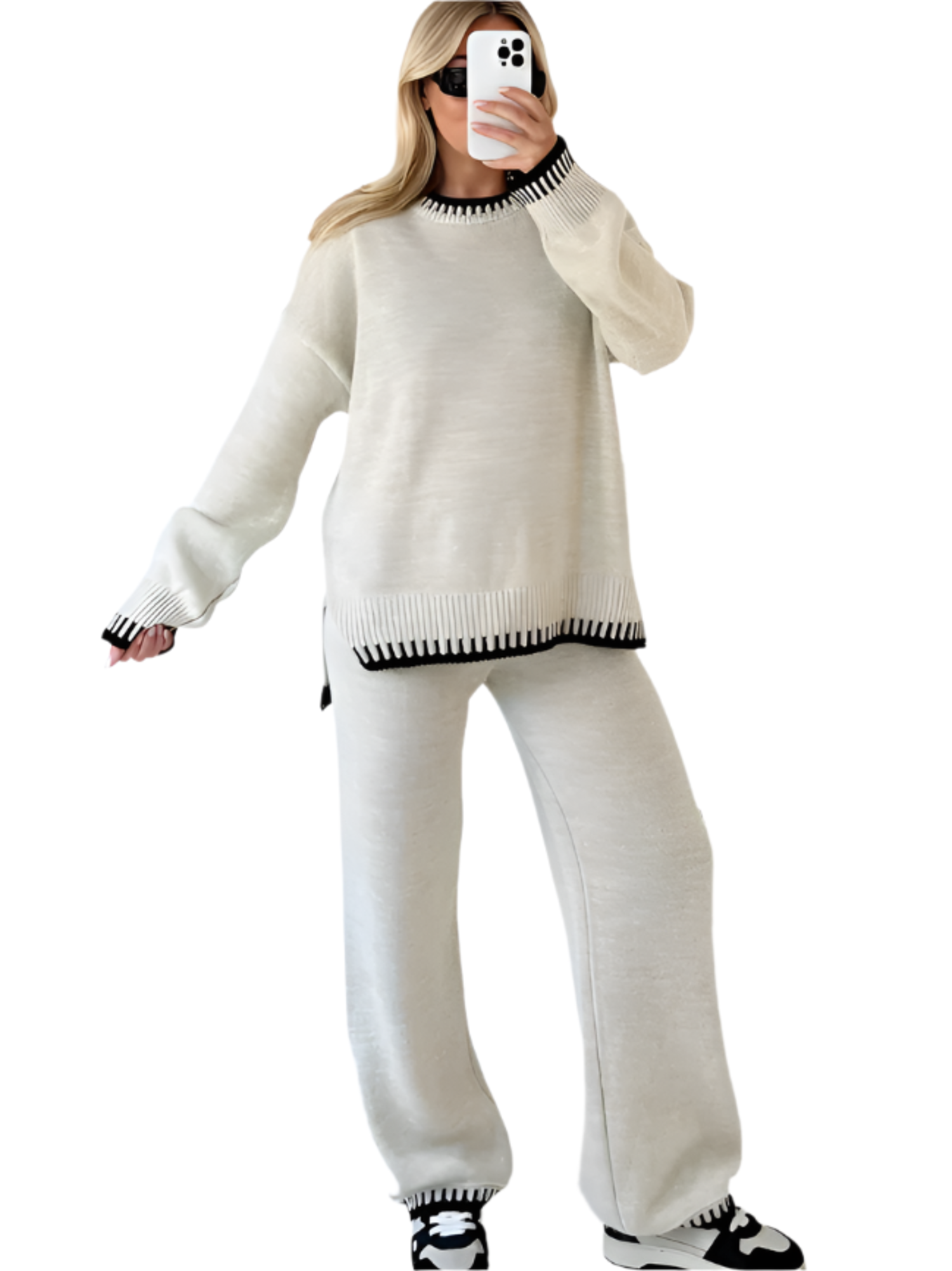 Women's Loungewear Set – Relaxed Fit – Ribbed Trims – Elastic Waist – Comfort Fit