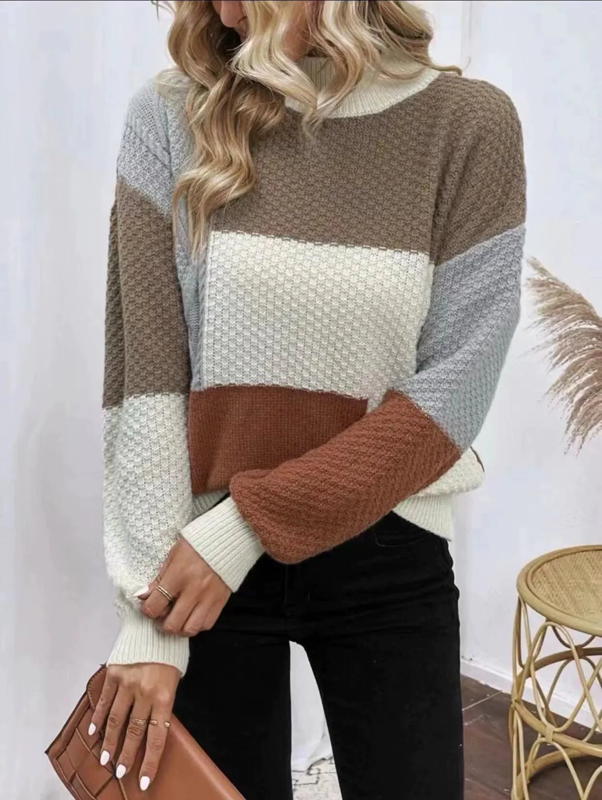 Ladies Pullover Sweater – Oversized Fit – Knitted Wool – Ribbed Turtleneck – Long Sleeves