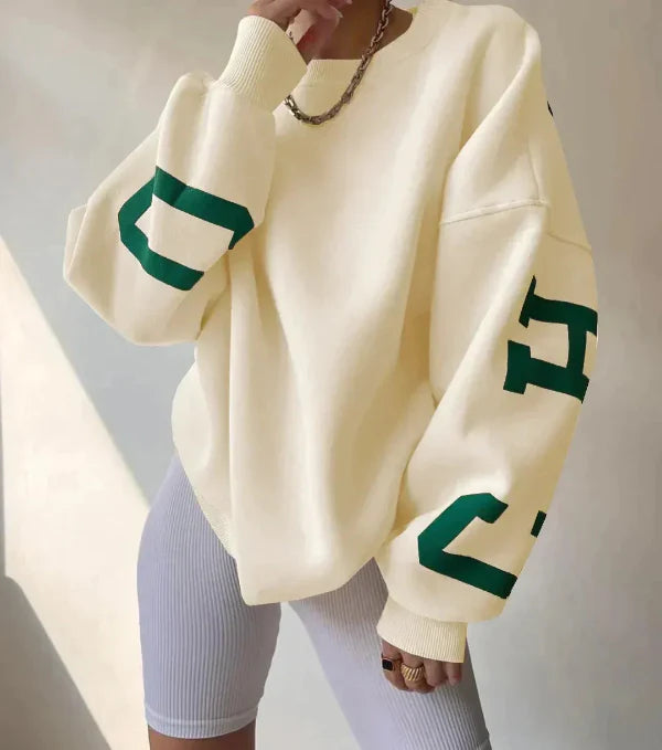 Women's Oversized Sweatshirt – Comfort Fit – Round Neck – Graphic Sleeves – Casual Style
