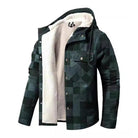 This plaid men's jacket with long sleeves and a hood has a modern and rugged appearance. The classic plaid pattern combined with the practical hood makes it a versatile choice for both everyday wear and a casual look.