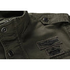 - Military style: The jacket has a rugged, military look with subtle details that make it a timeless item.