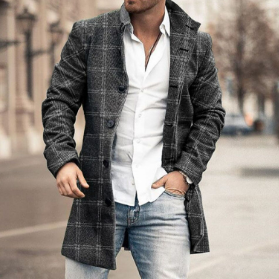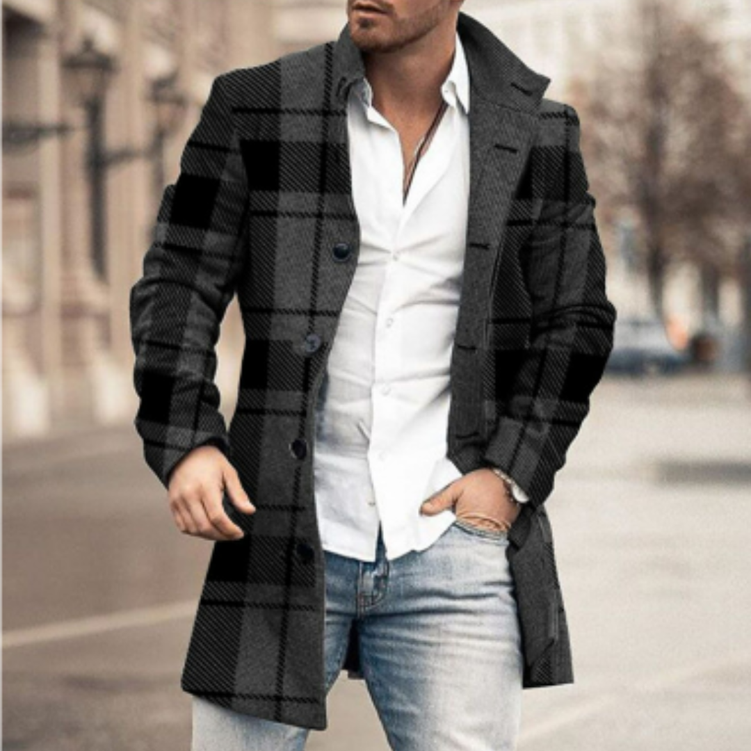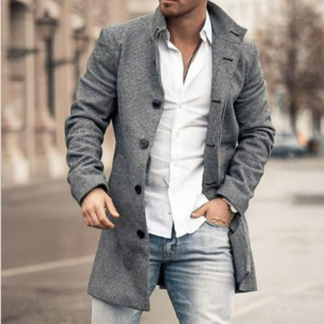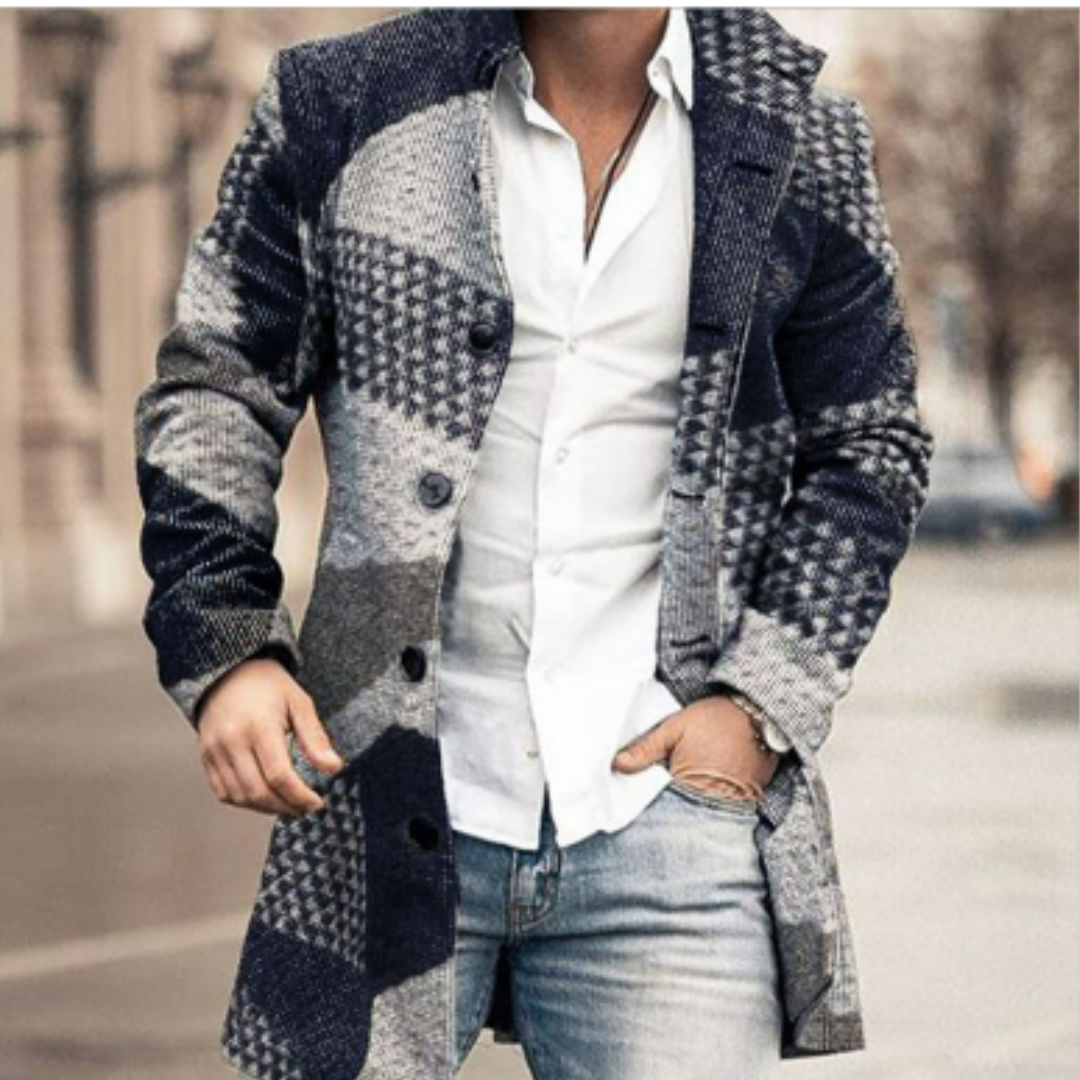 This unique men's jacket with buttons offers a striking and stylish look. The classic design with a modern twist makes it a versatile choice for various occasions, from casual to more dressed-up outfits. The buttons add a refined touch to the whole, while the fit provides a structured appearance.