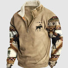 Men's Fleece Sweater – Soft Fabric – Zip Collar – Printed Sleeves – Outdoor Style: This stylish fleece sweater combines comfort with a unique outdoor style. The soft fabric and zip collar provide warmth, while the striking printed sleeves and moose detail give a trendy touch. Perfect for casual outdoor activities and everyday use.