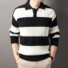 This striped knit sweater for men features a classic design with a subtle stripe pattern. It provides both warmth and style, perfect for casual days in the colder months.