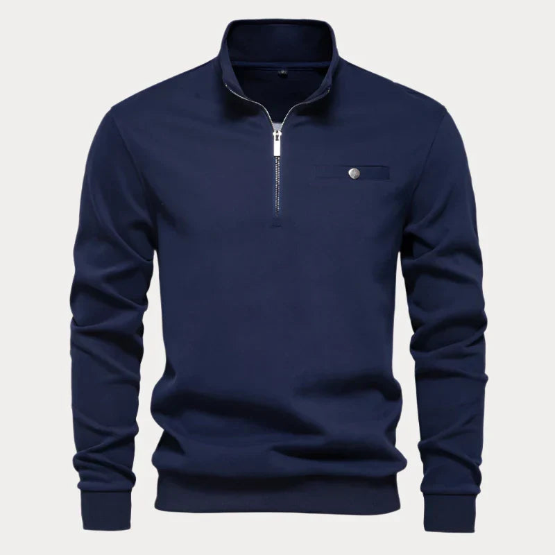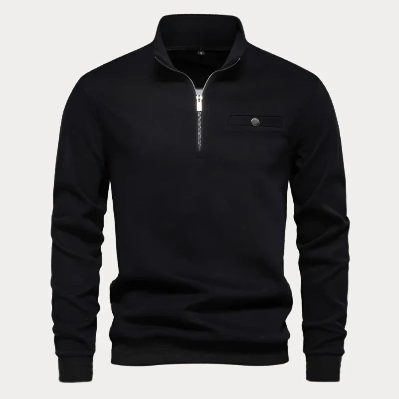 This men's sweater has a stand-up collar, perfect for extra warmth and comfort in the colder months. The design is simple and versatile, ideal for casual and layered looks.