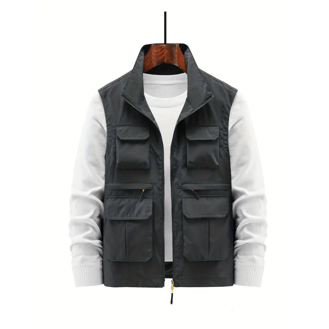 This zip-up vest for men combines functionality and style in a modern design. With a timeless look and a practical zipper, this vest is suitable for everyday use and easy to pair with various outfits.