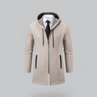 This elegant winter coat for men combines a sleek and modern design with a timeless look. The minimalist design is accentuated by refined details, making the coat a stylish choice for cold days and formal or casual occasions.