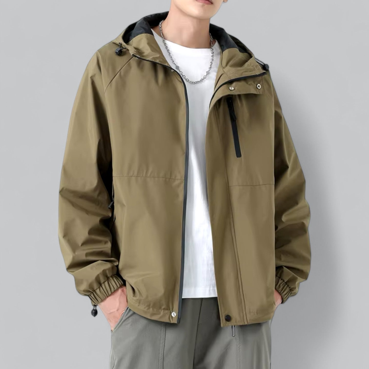 A functional and roomy windbreaker, designed to provide protection and convenience in unpredictable weather. The relaxed fit and thoughtful features make it the perfect choice for outdoor activities or leisure outings.