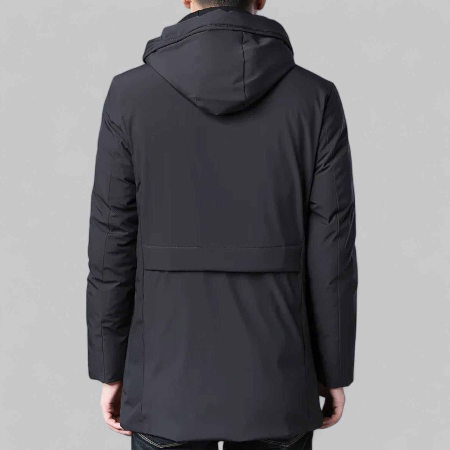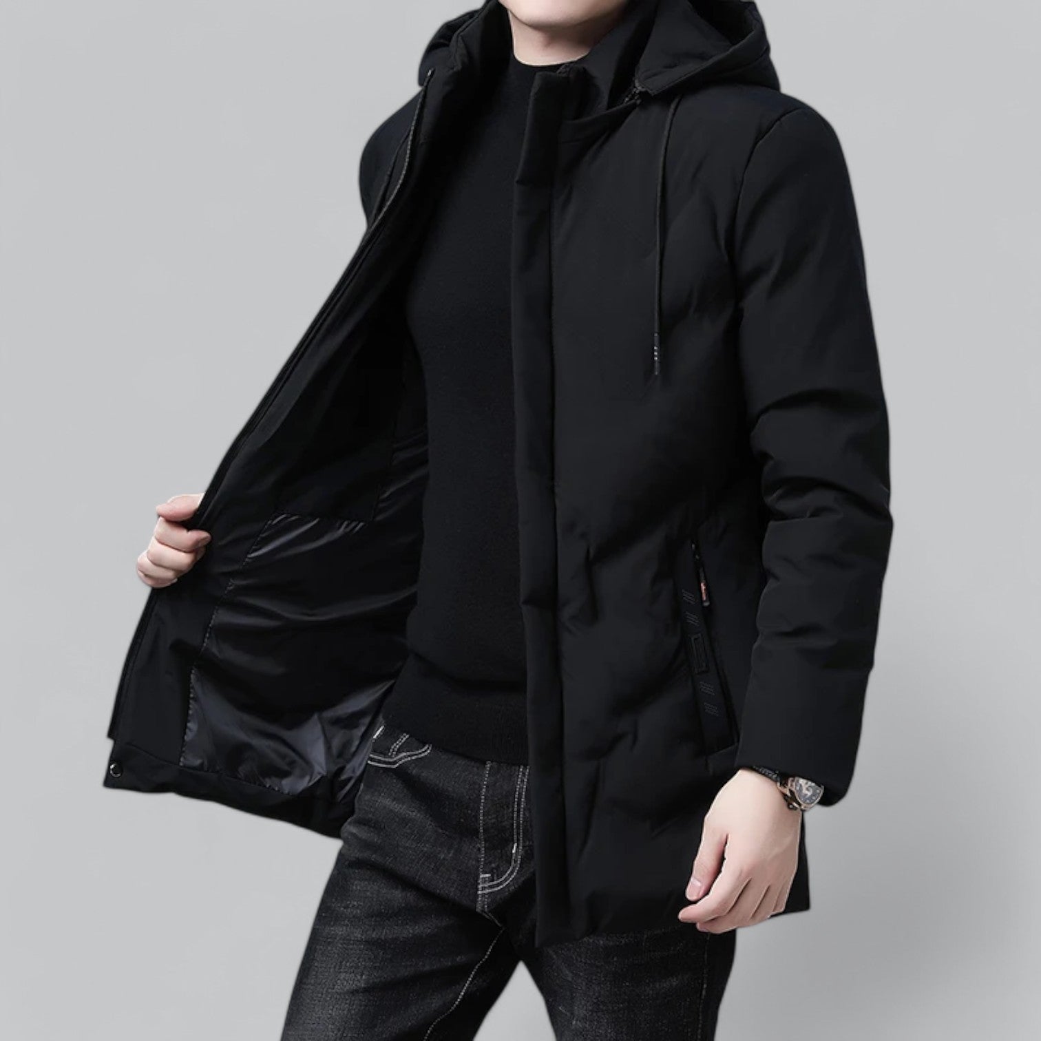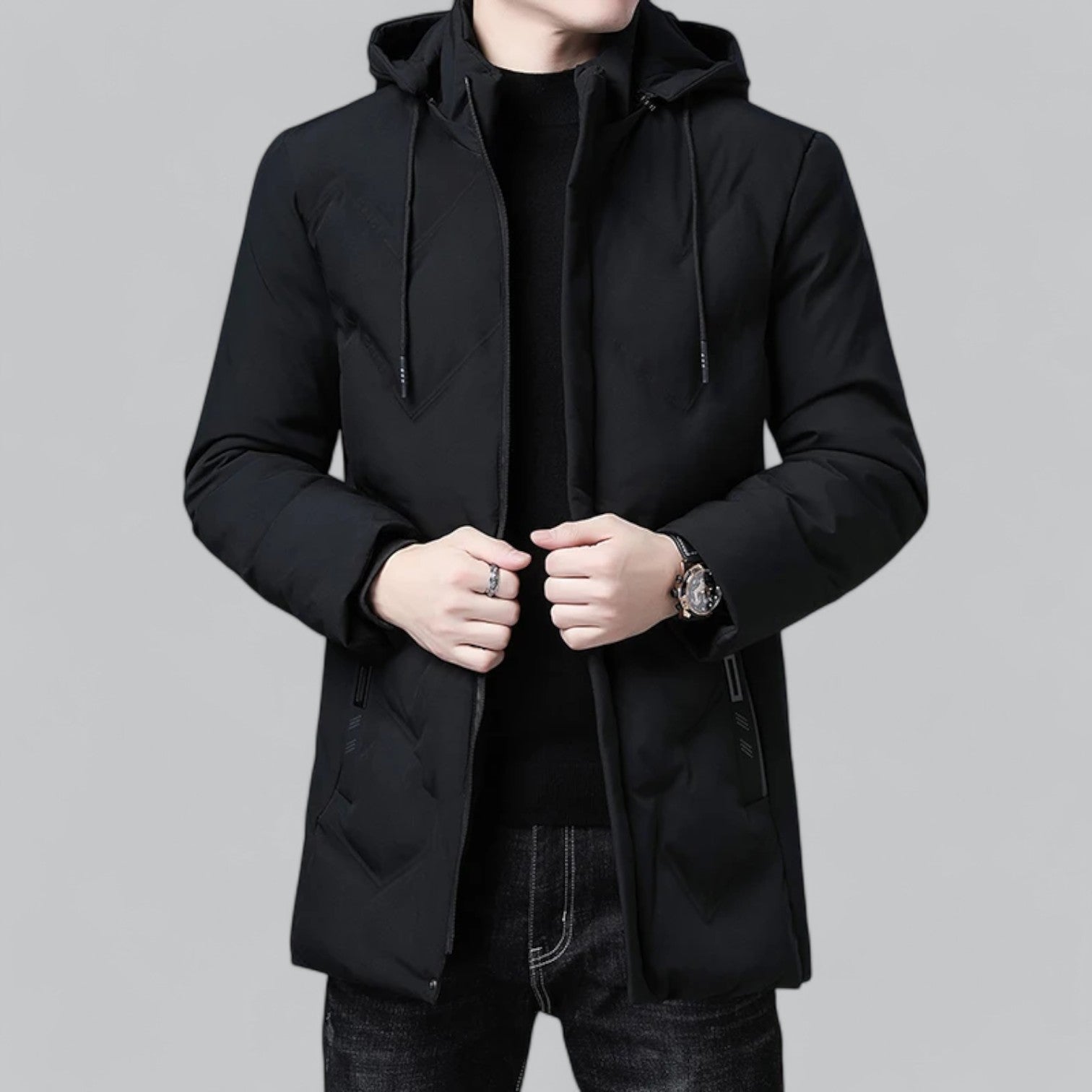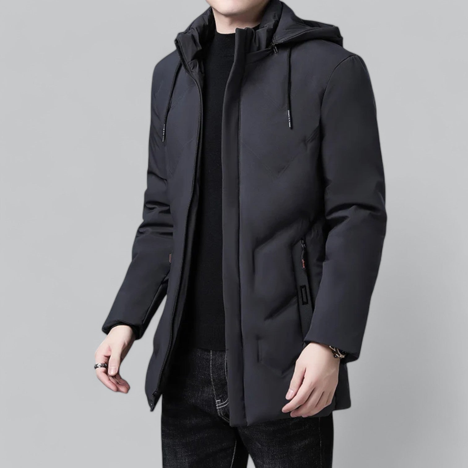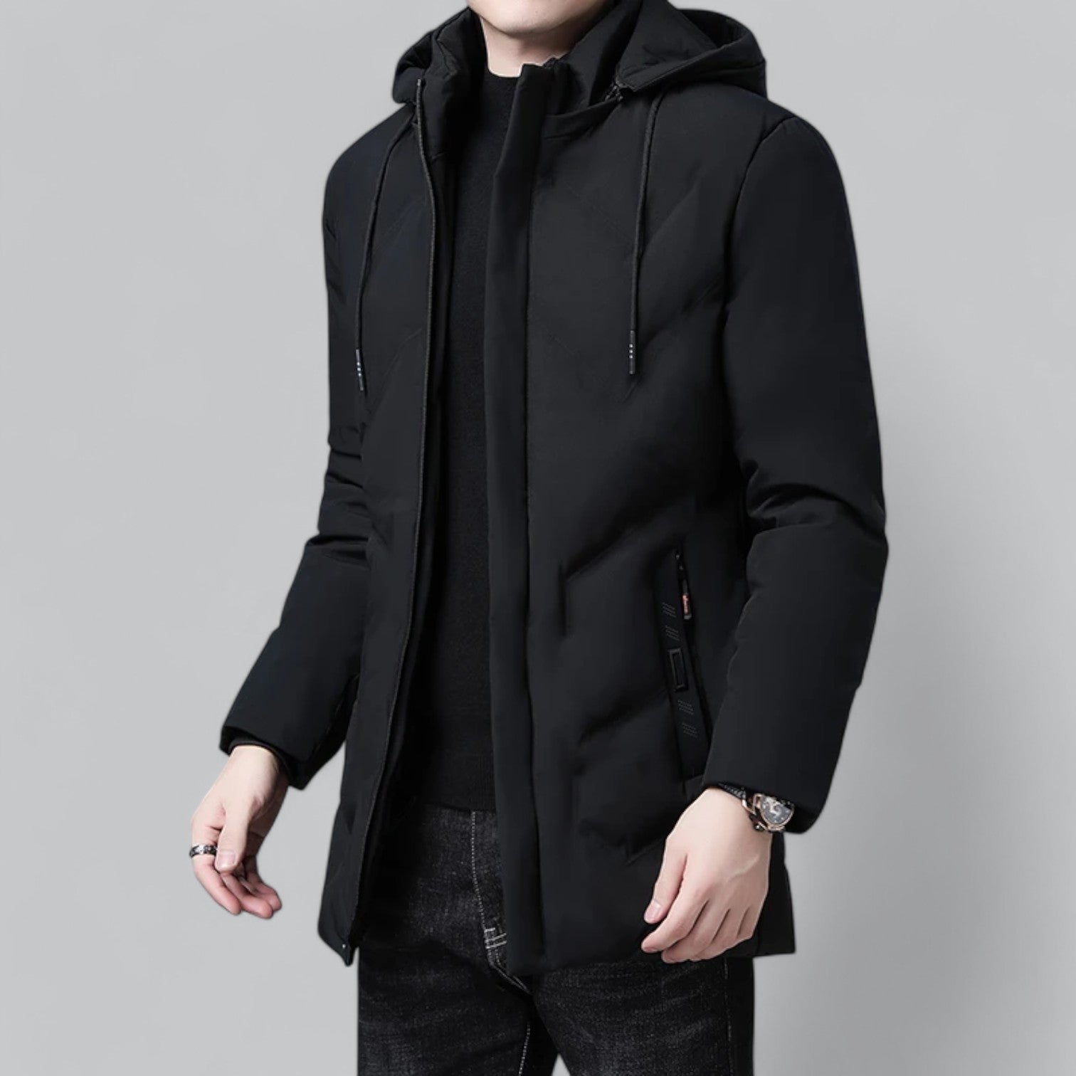 This fashionable hooded winter jacket for men combines style and functionality in one. The sleek design and practical hood make this jacket an excellent choice for the cold season, while the modern look makes it a versatile addition to your winter wardrobe.