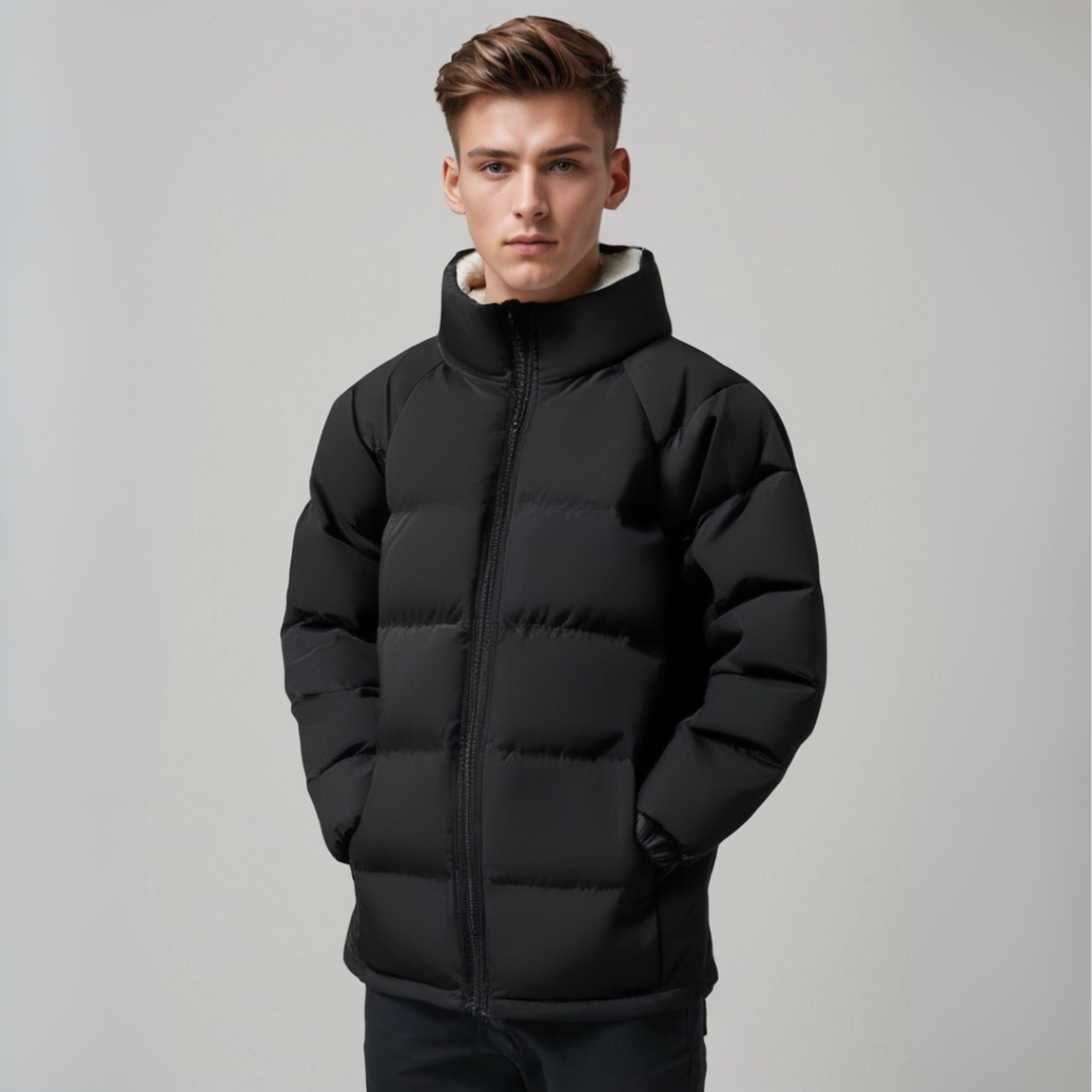 This puffer jacket offers a sleek design with a practical and modern fit, providing both comfort and style for colder weather. Its versatile look can be easily paired with everyday outfits, making it an essential garment for various occasions.
