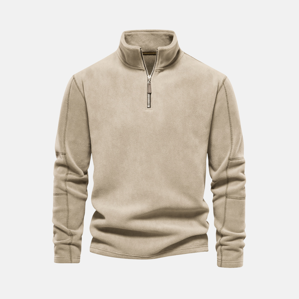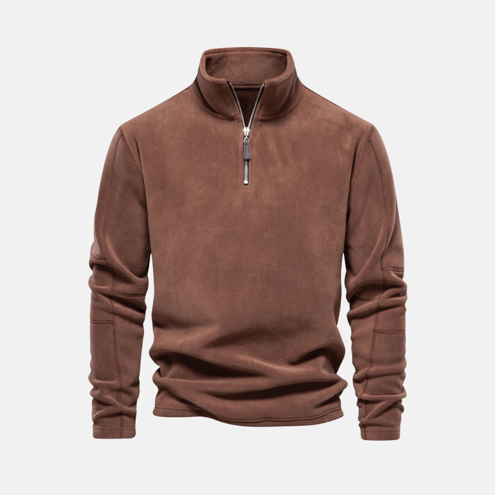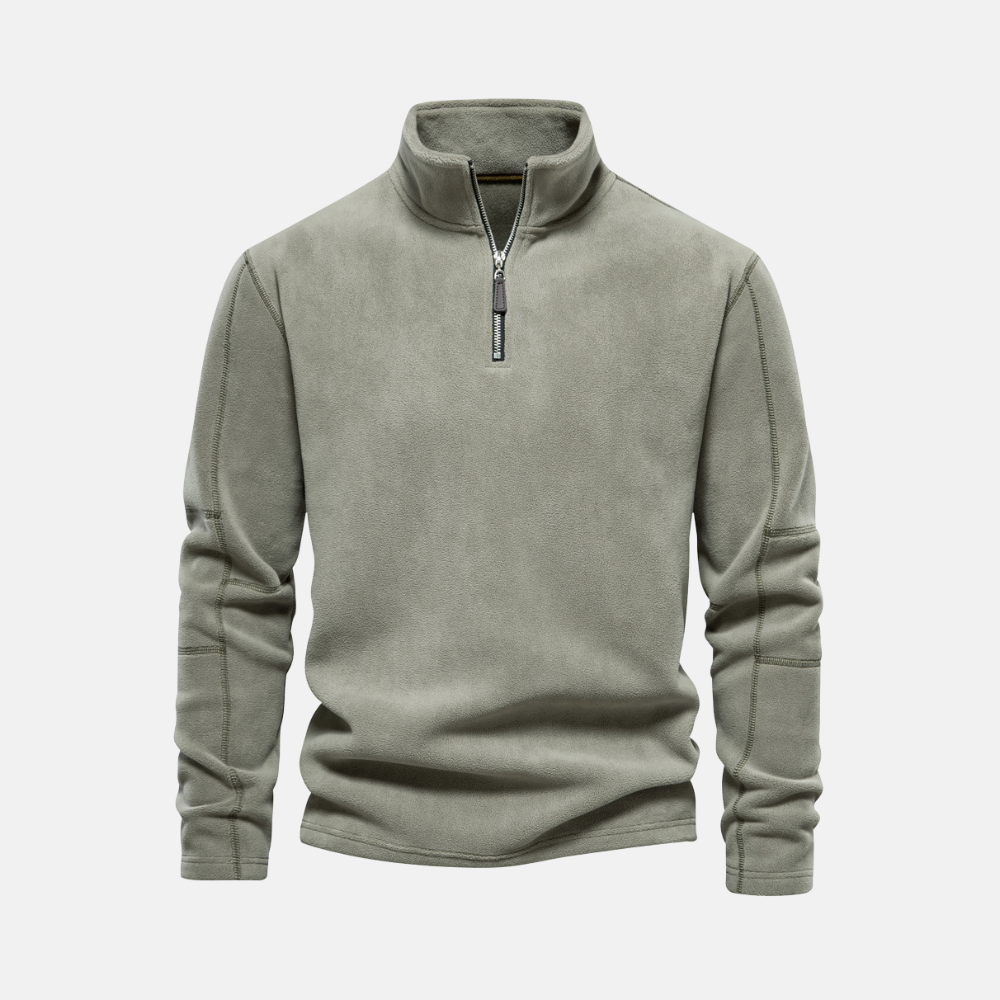 Men's Sweatshirt - Fleece - Regular Fit - Stand-up Collar - Half Zip