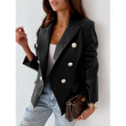 Ladies Blazer – Faux Leather – Fitted – Double-Breasted – Shoulder Pads – Notched Lapel
