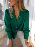 Ladies Blouse – Relaxed Fit – Long Sleeves – Button Closure – Elegant Drape