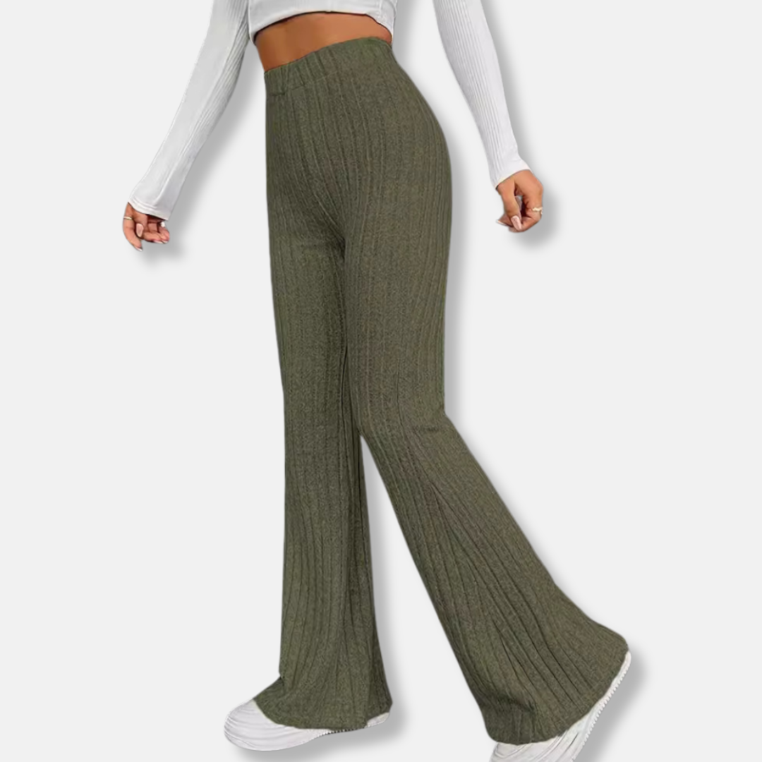 Ladies Pants – High Waist – Slim Fit – Flared Leg – Ribbed Stretch Fabric